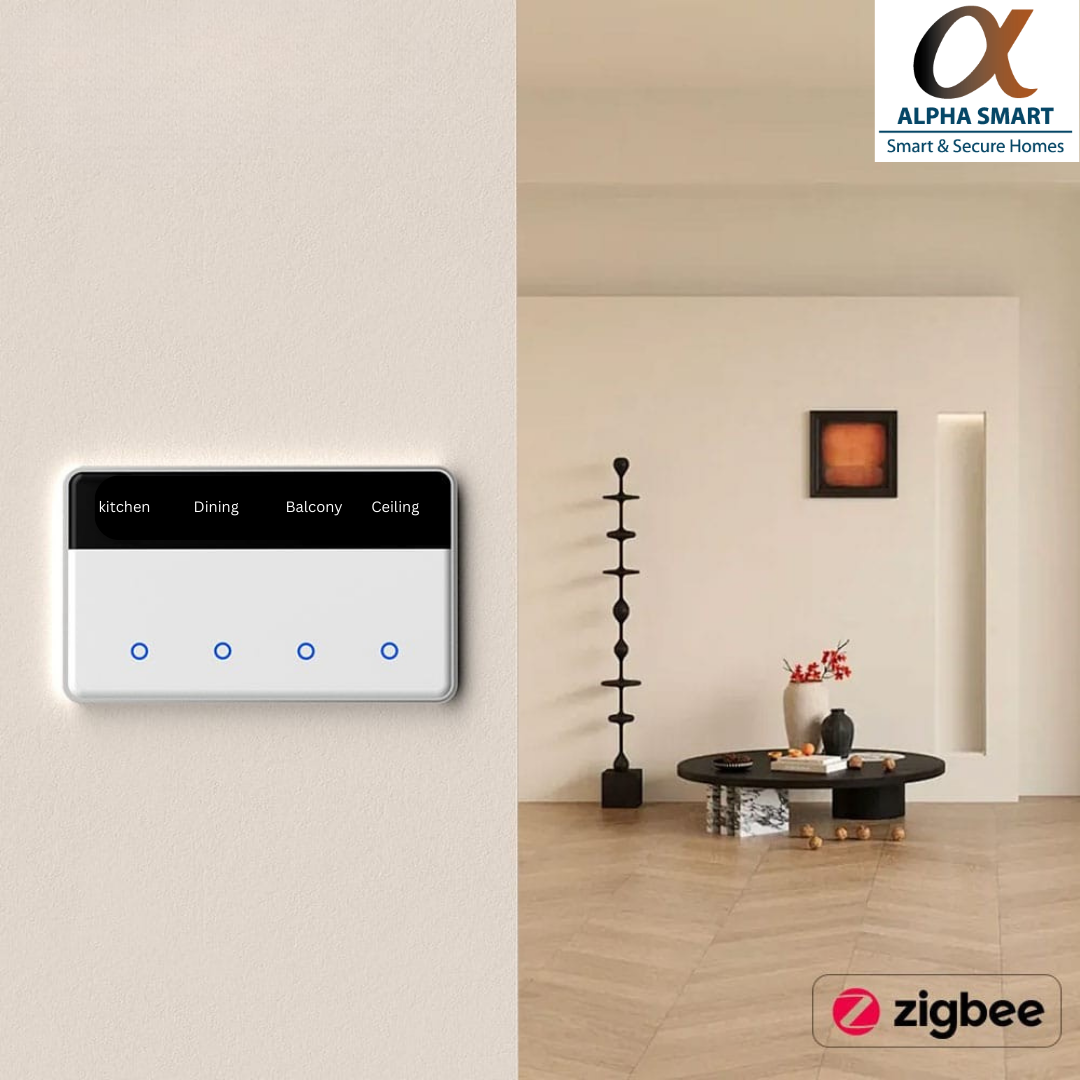 Transform your home into a smart sanctuary with the Aura Series 4 Gang by Alpha Smart Homes — a premium touch switch designed for multi-zone lighting control. This advanced panel lets you manage four distinct areas — kitchen, dining, balcony, and ceiling — with responsive touch buttons and a sleek, minimalist design. Whether you’re upgrading your smart home or starting fresh, this switch delivers style, safety, and seamless integration.